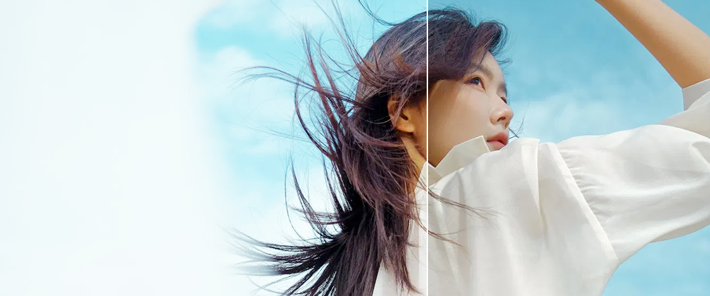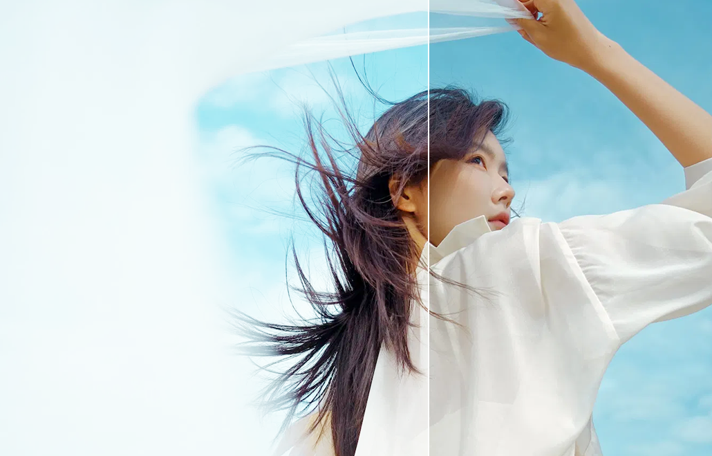 Lagi foto di luar ruangan, langitnya malah jadi putih terang polos kayak kertas kosong. Padahal harusnya ada awan-awan syahdu biru-biru gimana gitu.