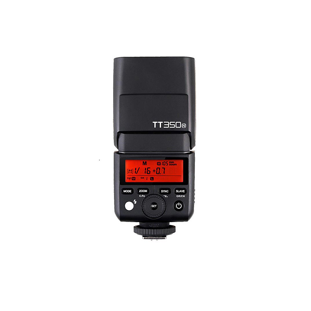 With full support for Nikon i-TTL, including high-speed sync, and a built-in 2.4GHz radio system, the compact Godox TT350N Mini Thinklite TTL Flash is an excellent everyday companion for your camera. With a lightweight design and guide number of 118′ at ISO 100 and 105mm, the TT350N is useful for both on-camera and off-camera operation. Users can also use it as an optical slave in addition to use as a radio TTL master/slave unit. It is versatile as well with the ability to tilt from -7 to 90° and rotate 270°.
