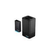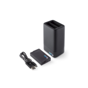 The GoPro Dual Battery Charger with Rechargeable Battery bundle features a dual charger and a standard 1600mAh battery to power your GoPro MAX 360 camera. The charger allows you to charge a single battery or two batteries sequentially. It charges the battery with the most remaining runtime first to provide you with a fully charged battery as soon as possible. Separate LED indicators confirm the charging status of each battery. The charger plugs into a USB power source and a compatible USB Type-C cable is included.