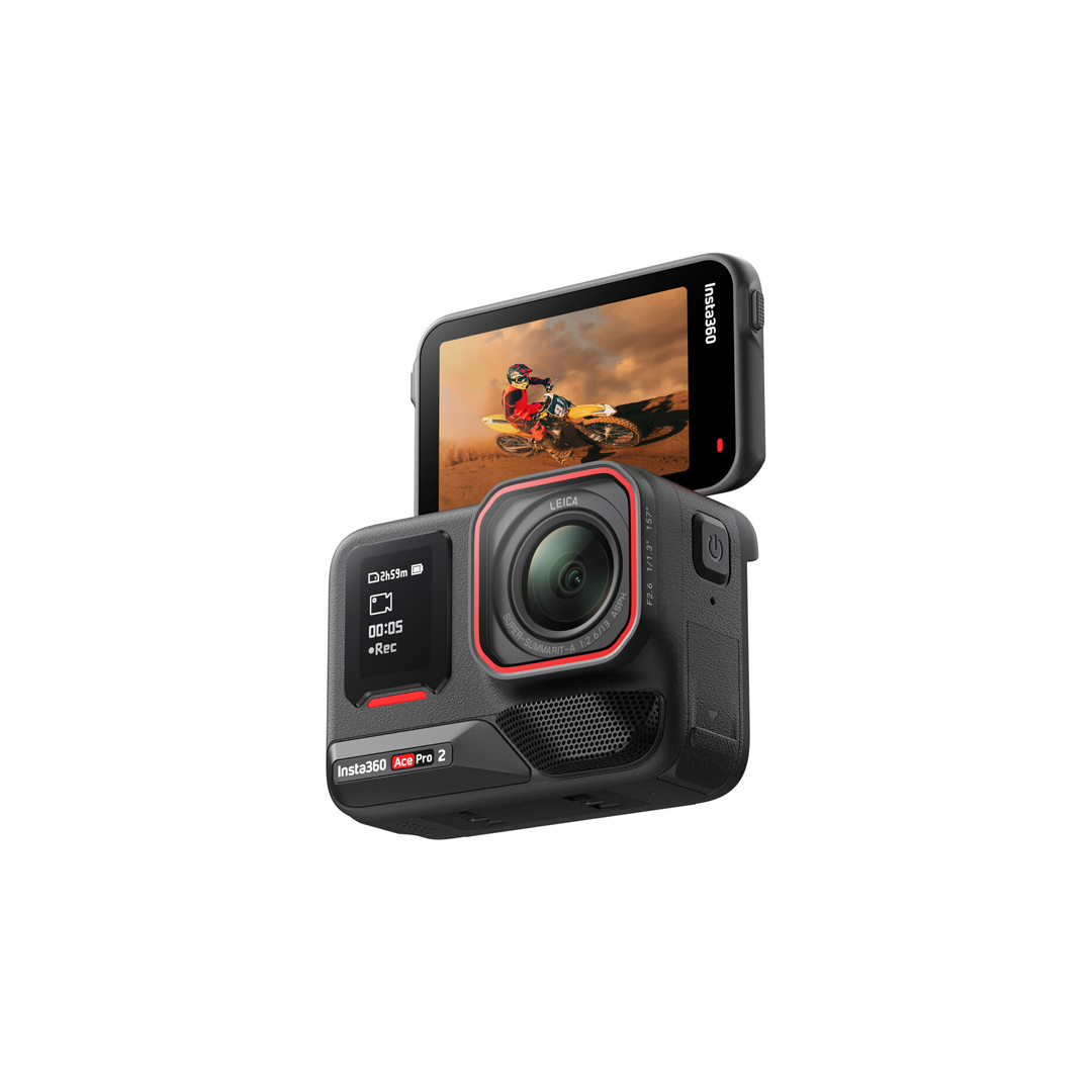 Capture all the action on the road, in the studio, or in the water with the Ace Pro 2 Action Camera from Insta360. This updated version of the compact, easy-to-use action camera still provides up to 8K photo and video capture in a tiny action camera body with a dual camera chip that can be mounted and carried anywhere when traveling, shooting action videos, or vlogging. The large 1/1.3″ sensor allows you to capture up to 8K30 resolution and features an automatic HDR mode and superior low-light performance to capture vibrant, realistic color. The wide-angle lens was developed with world-class lensmaker Leica, allowing you to capture up to a 157° field of view. Upgraded built-in microphones improve your audio capture, and an AI chip enhances your imaging power.