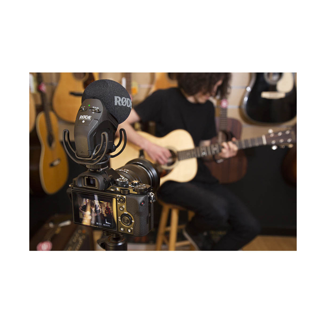 The integrated Rycote Lyre shockmount system protects against handling noise. The Stereo VideoMic features a high-pass filter switch at 75 Hz for minimizing low-frequency noise, and a -10 dB pad for maximizing headroom on behalf of capturing loud signals without distortion. The +20 dB level-boost switch is specifically designed to provide a higher-quality signal with DSLR cameras. When activated, the camera preamp level is reduced, resulting in a lower noise floor and a much clearer recording.