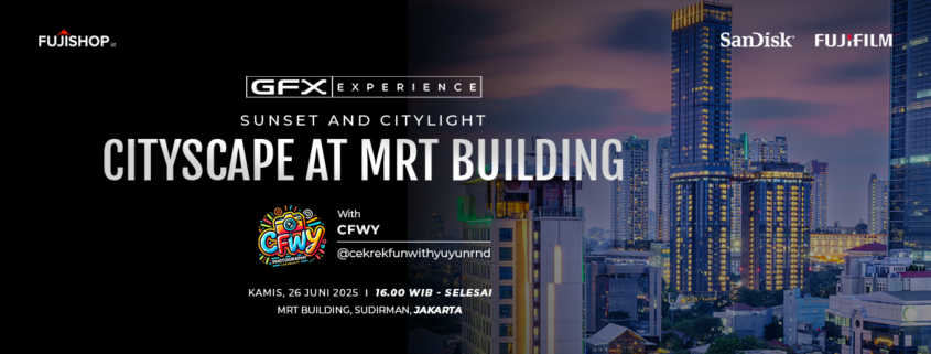Di workshop ini, kalian nggak cuma belajar teknik motret cityscape saat golden hour, tapi juga bisa coba langsung kamera medium format Fujifilm GFX dan berkesempatan dapet memory card dari SanDisk! ๐๐ท๐พ