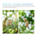 - Nine-blade diaphragm for a soft bokeh effect when employing selective focus techniques