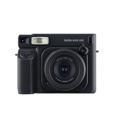This camera uses INSTAX’s largest format instant film to create 2.4 x 3.9″ images on a 3.4 x 4.3″ piece of film. Featuring a retractable 95mm f/14 lens and a two-range focus zone setting, sharp imagery is ensured. A 0.37x optical viewfinder with a target spot makes composing images easy. The INSTAX WIDE 400 has a built-in flash for shooting in low-light settings.