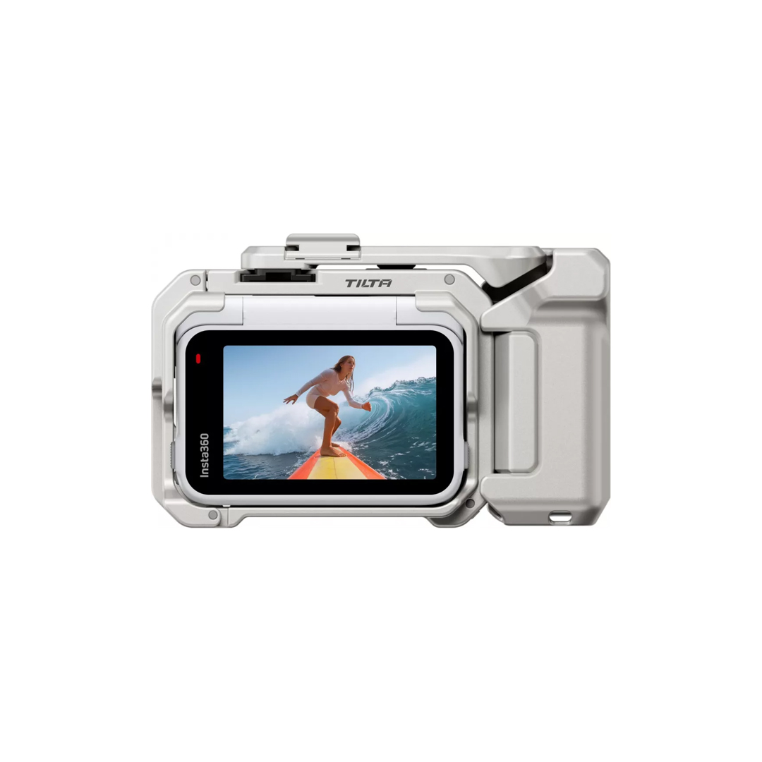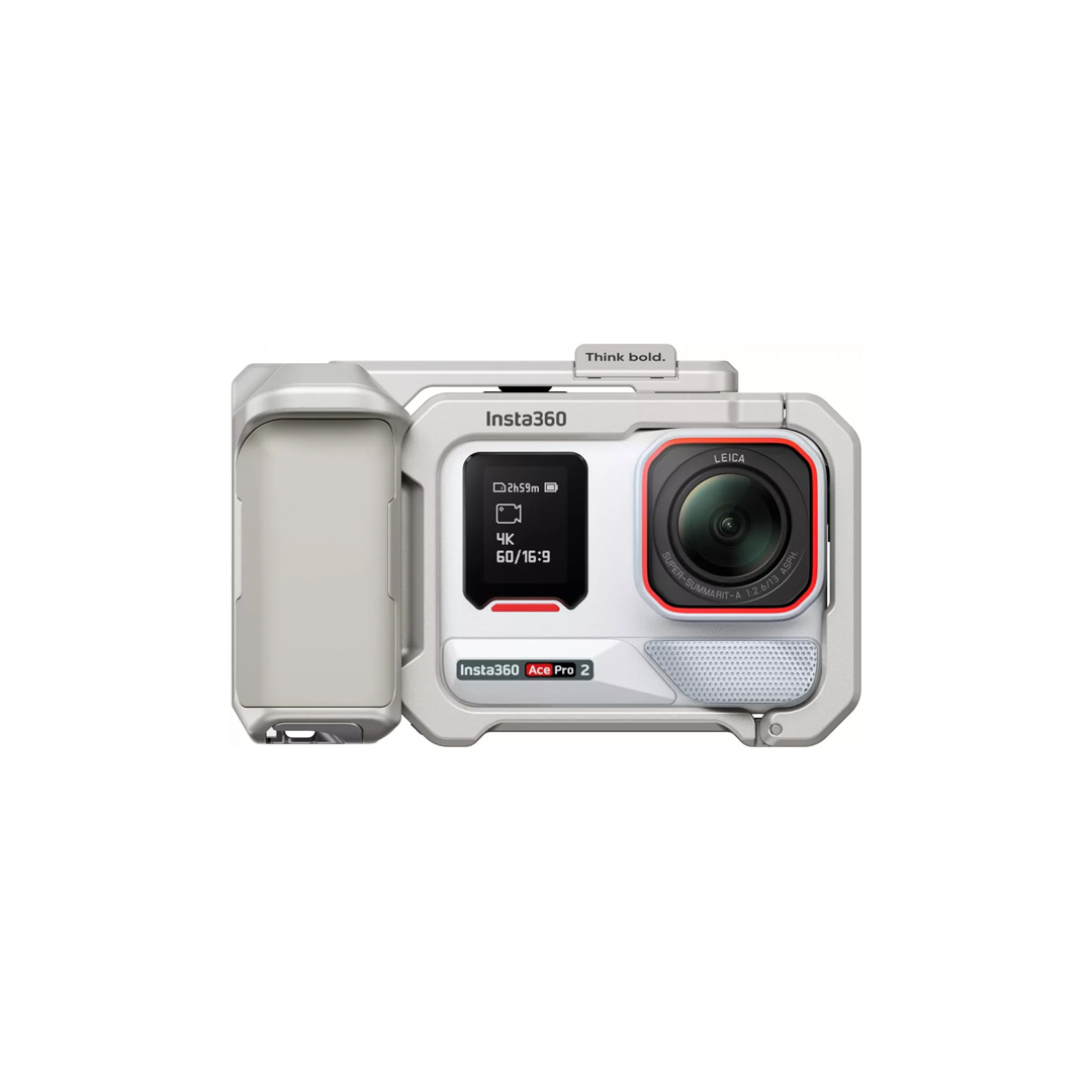 Protect your Ace Pro or Ace Pro 2 camera while expanding its grip and mounting capabilities with the Xplorer Grip Kit from Insta360. The kit features an aluminum camera frame and a right-side handgrip to use your camera more like a traditional handheld camera when on the go. The camera quickly fits into the frame assembly using the side door, which allows quick access to the battery. It does not obstruct any part of the display or connectors.