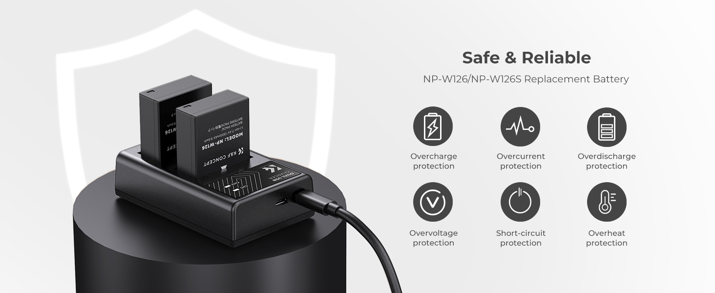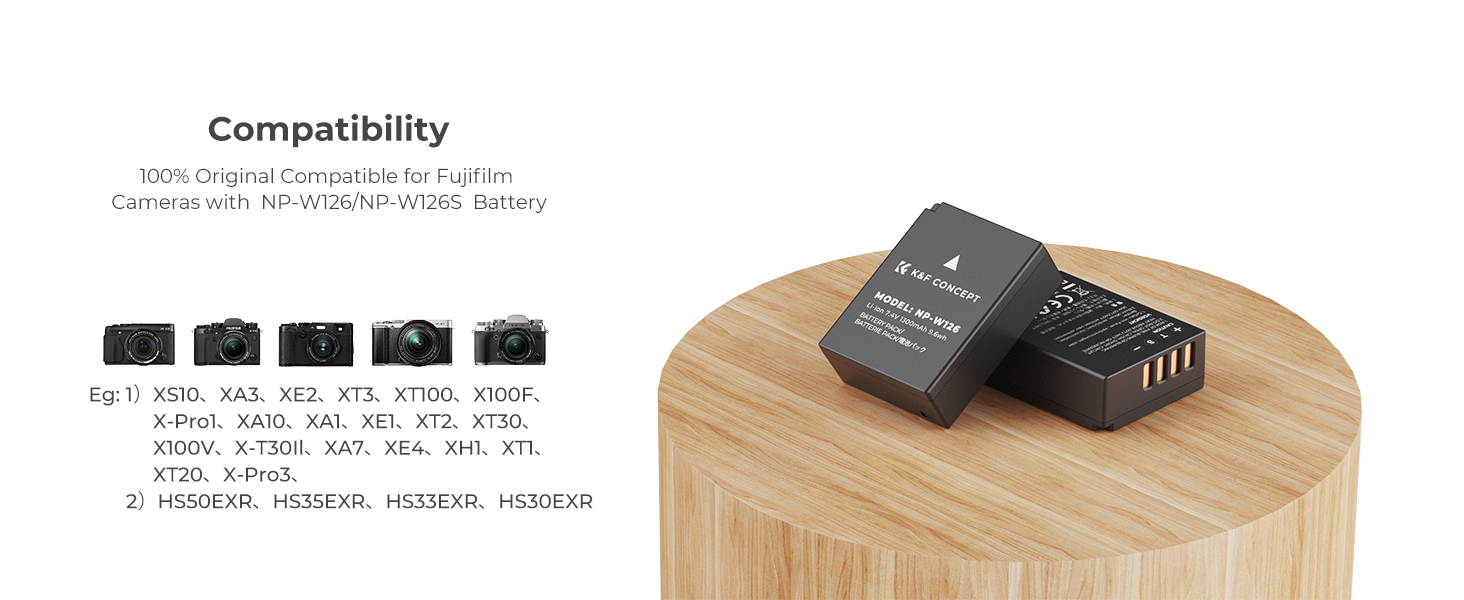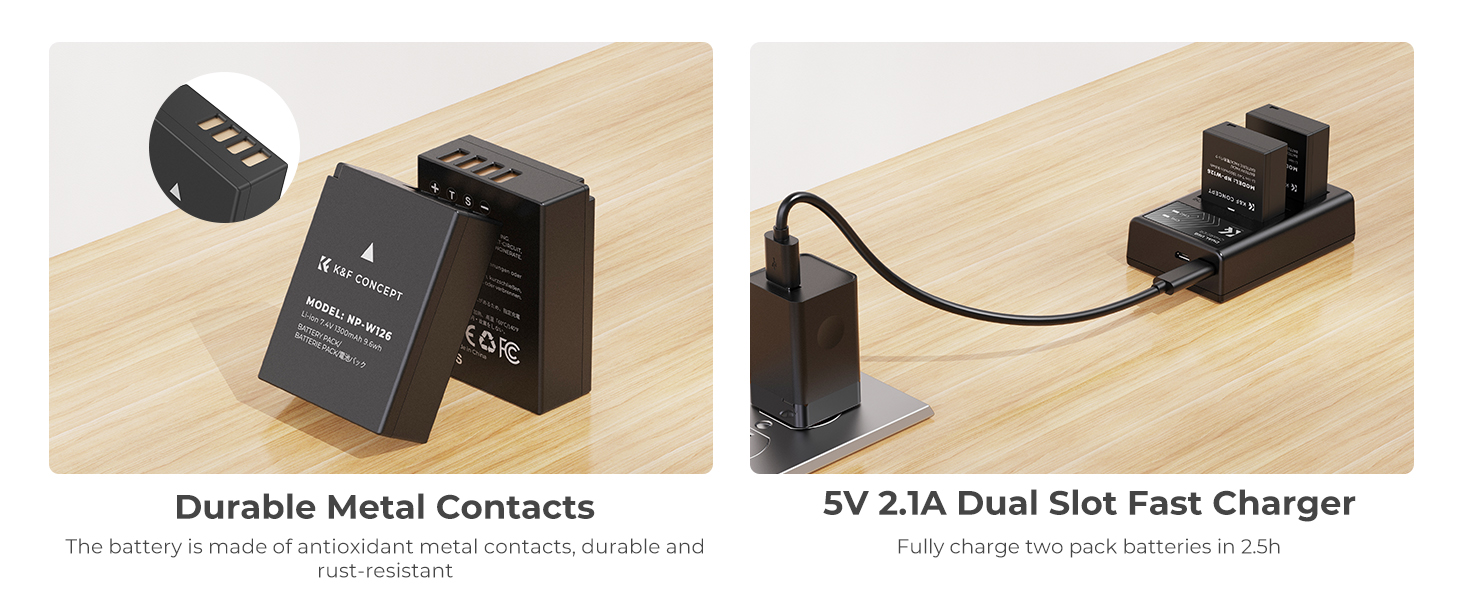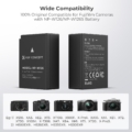 1300mAh Powerful Capacity. 2 Pack 1300mAh NP-W126/NP-W126S Replacment Batteries with longer-lasting power and will never miss a good view.