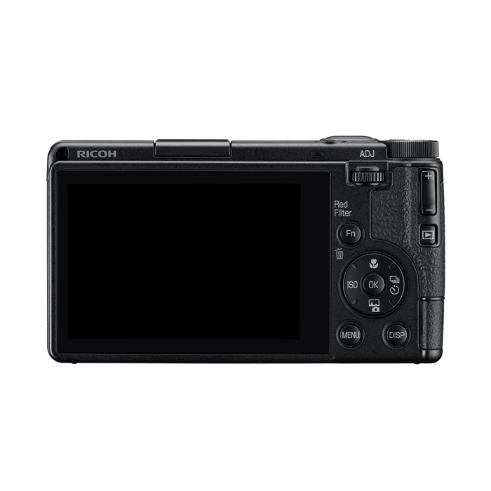 - The exterior of the camera body has also been updated to match the monochromatic ethos of the imaging system: the body, shutter release button, and ring cap have a sleek matte black finish; the front GR logo has a semi-gloss black finish; and the power button illumination has been changed to white to maintain a fully monochrome appearance.